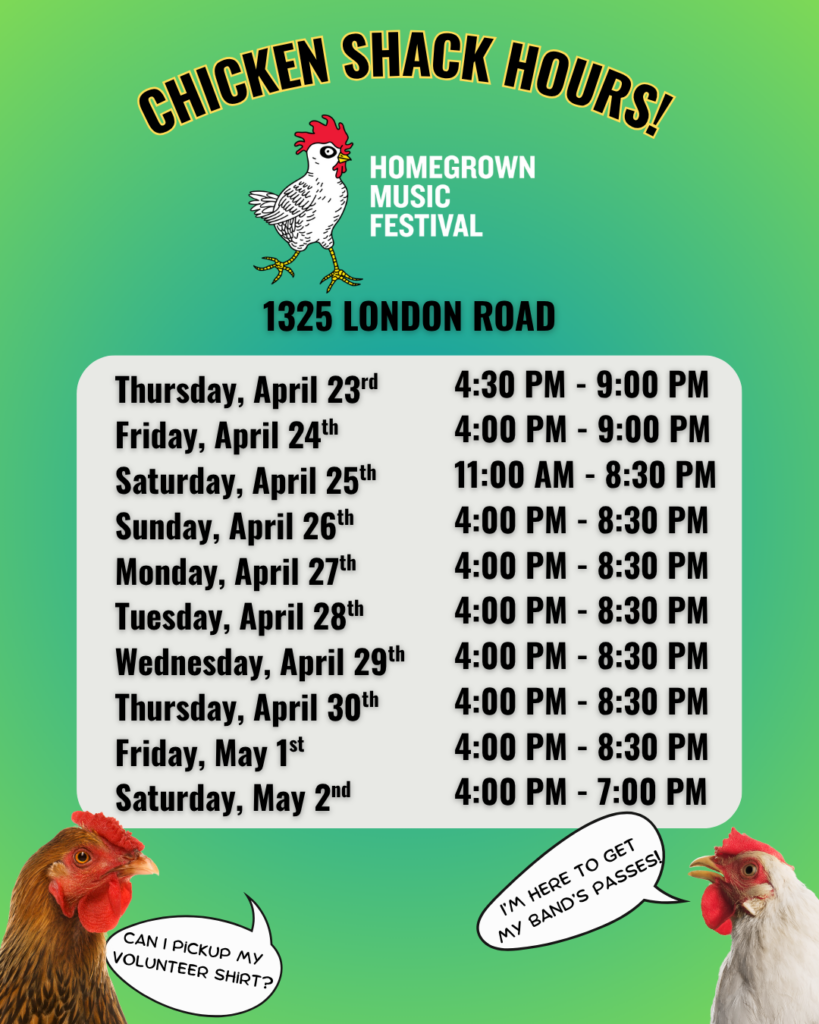 It is almost that time! Below are the Chicken Shack hours for the 2026 festival.